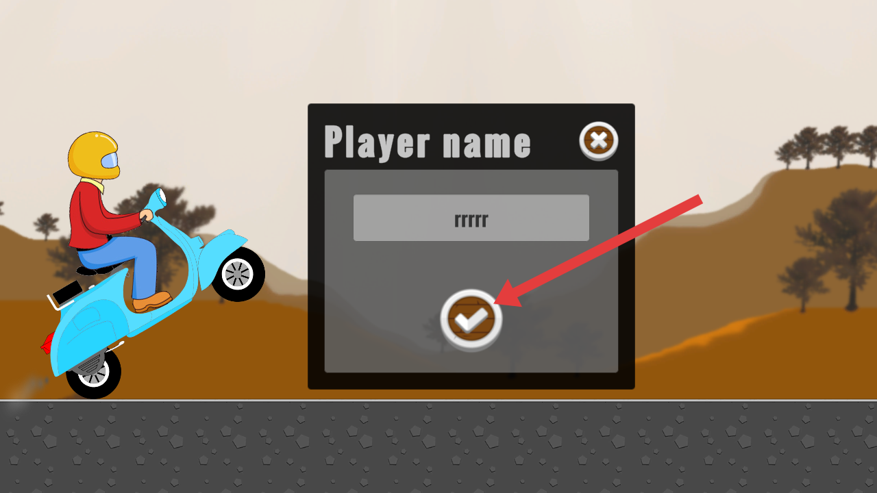 1、在Player name对话框内输入自己的昵称后,点击对话框底部带白色对勾的圆形确认按钮,完成角色命名。