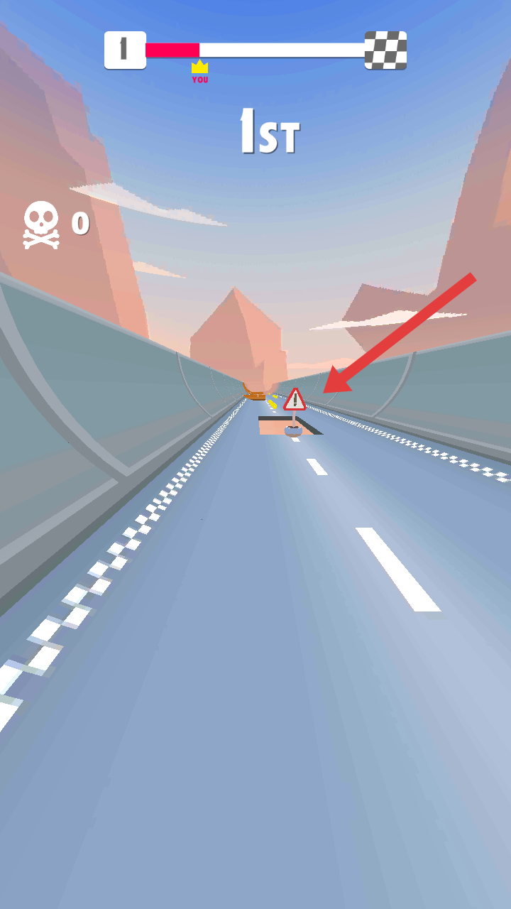 2、留意赛道中的陷阱警示如坑洞标识,提前调整方向避让,避免因碰撞减速或淘汰,保持行驶节奏。