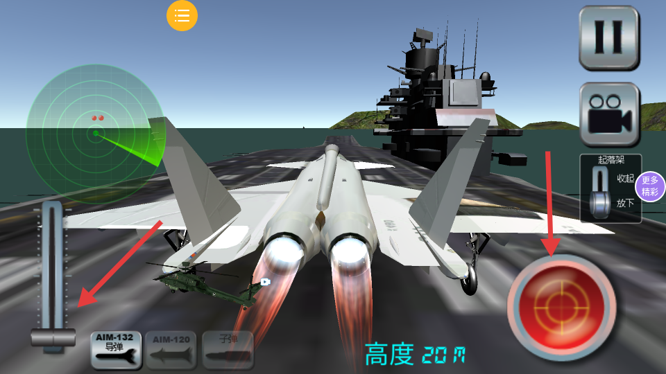 1、选择任务模式后进入驾驶舱,通过虚拟摇杆控制飞行高度与方向。