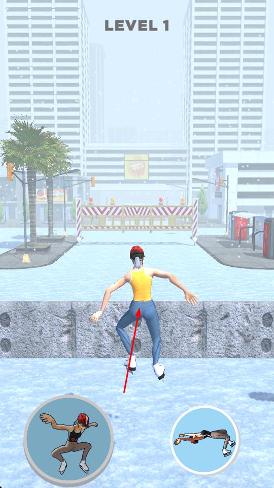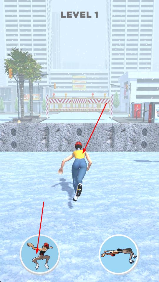 1、进入游戏启动界面,点击TAP TO START按钮,进入LEVEL 1冰雪城市场景,操控滑冰角色开启挑战之旅。