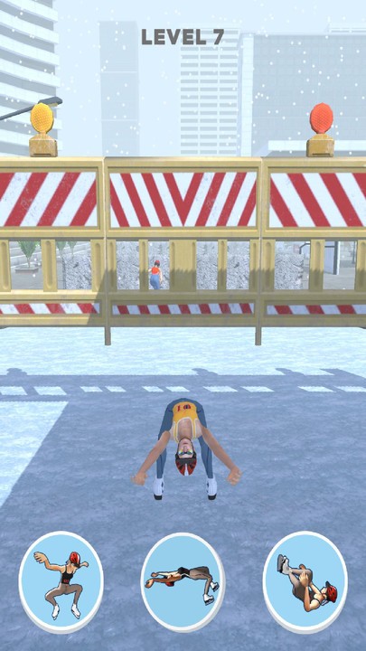 3、在冰雪场景中持续选择适配动作,完成关卡内的障碍跨越任务,推动角色向关卡终点前进,推进游戏进程。