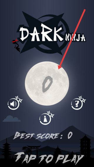 1、点击TAP-TO-PLAY开启Dark-Ninja游戏,操控忍者在月夜场景开启跳跃挑战,初始分数为0,即将开启冒险之旅。