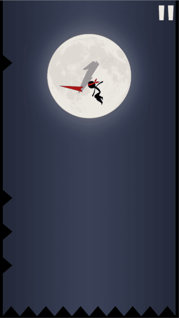 2、游戏中观察忍者位置,找准时机点击屏幕使忍者跳跃,跨越空间间隙,避开两侧障碍,维持奔跑进程积累分数。