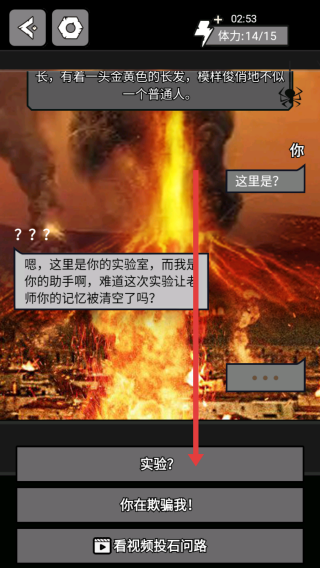 1、首屏选这里是的选项,获取场景信息实验室、助手身份,推进剧情的发展,别选过激的选项。