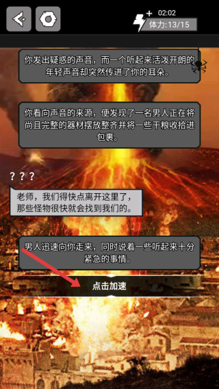 3、遇点击加速的提示,快速点击,加快逃离节奏,躲避怪物,关注体力,确保角色存活,完成流程。