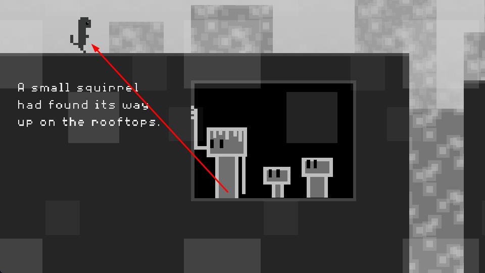 2、游戏中操控屋顶上的小松鼠移动,留意场景内的提示信息,同时能够去观察和推进冒险进程。
