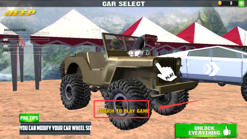 1、进入车库界面挑选心仪座驾,多款专业越野车型各具特色,满足不同地形挑战需求。