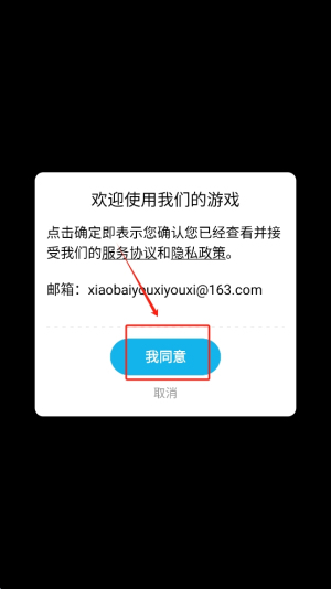 1、同意服务协议:首先,打开游戏后点击“我同意”按钮。
