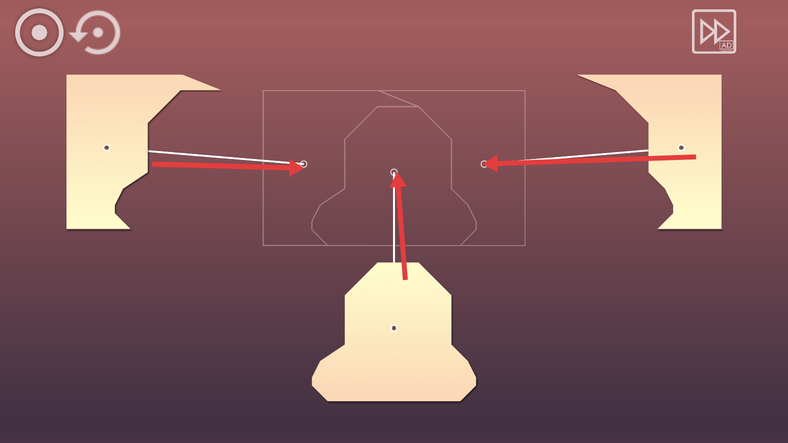 2、按红色箭头指引,拖动两侧与下方图形,对齐中间框架的连接点,完成图案拼接的初始步骤。