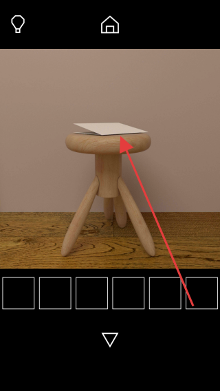 2、探索房间,先点击凳子上的纸张,收集线索,留意场景细节门、家具 ,分析解谜思路,寻找开门道具或密码。