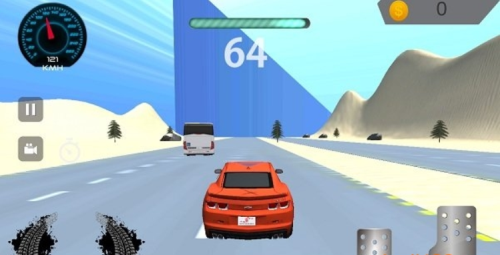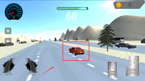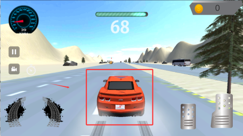 2、选定赛道后进入竞速环节,通过虚拟方向盘与按键控制车辆行驶,在限定圈数内完成比赛目标。