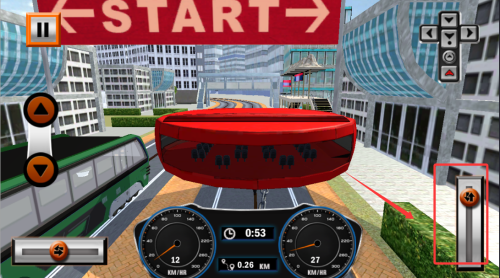 3、通过虚拟方向盘和踏板控制公交车行驶,注意保持车速平稳并按时停靠指定站点,完成载客任务。