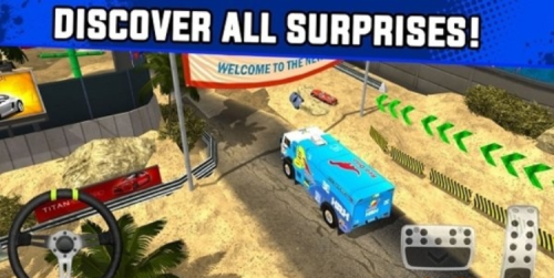 2、参与紧张刺激的卡车竞速对决,在开阔的机场赛道上展现特技驾驶技巧与竞速实力。