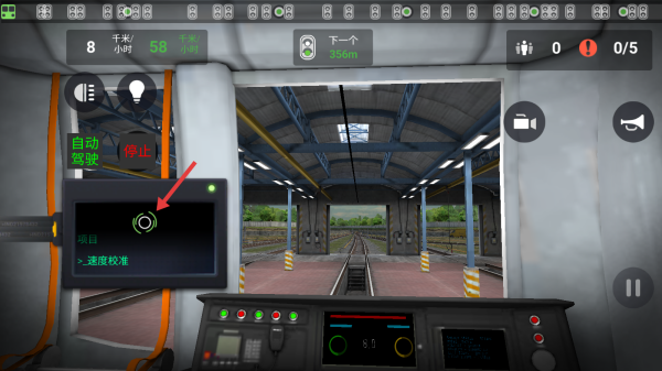 2、行驶中,留意速度校准提示,通过仪表盘观察数据变化,借助自动驾驶,让列车沿轨道稳定前行。