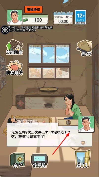 1、进入游戏,开局在屋内触发重生剧情,与家人对话推进故事。
