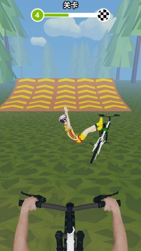 1、开始游戏后先适应骑行操作,用虚拟按键控制自行车前进和转向,保持平衡避免中途翻车摔跤。