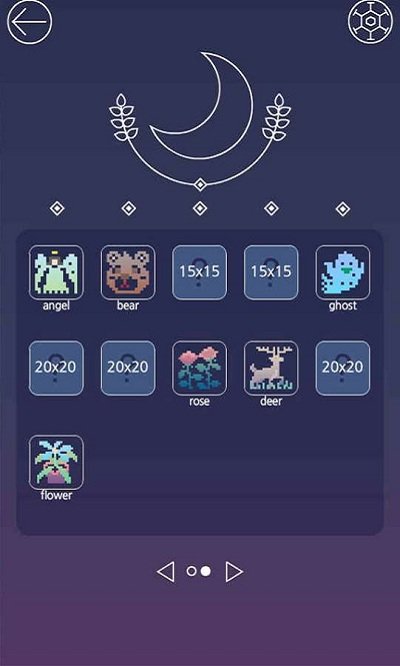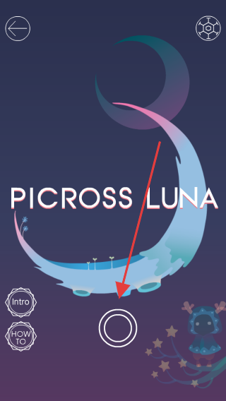 1、进入PICROSS LUNA游戏初始界面,点击中间白色圆圈按钮,开启游戏之旅,准备挑战谜题。