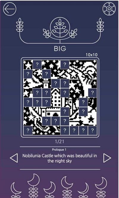 2、在关卡选择界面,找到标有BIG 10x10的谜题网格,点击进入Nobilunia Castle关卡,开始解谜。
