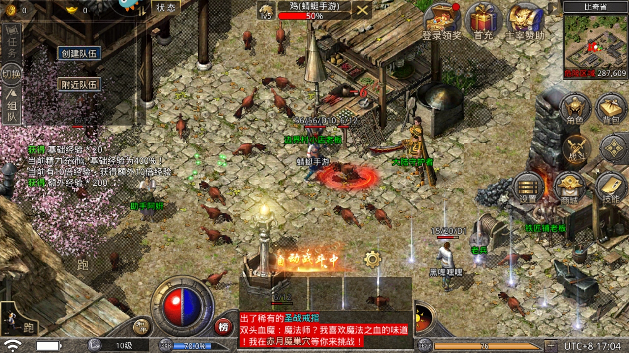 对于自身不强大的零充或者微充来说,寻求一个强大的行会来保护自己是极其需要的。其次建议组好自己熟悉的兄弟一起来行动,比如是一起来找怪,一起来打怪,整体效率也会高很多。毕竟新区时,70级的BOSS绝对是个热门怪,万一碰到一些爱抢怪的,就只能以人多势众的姿态来吓跑他们。