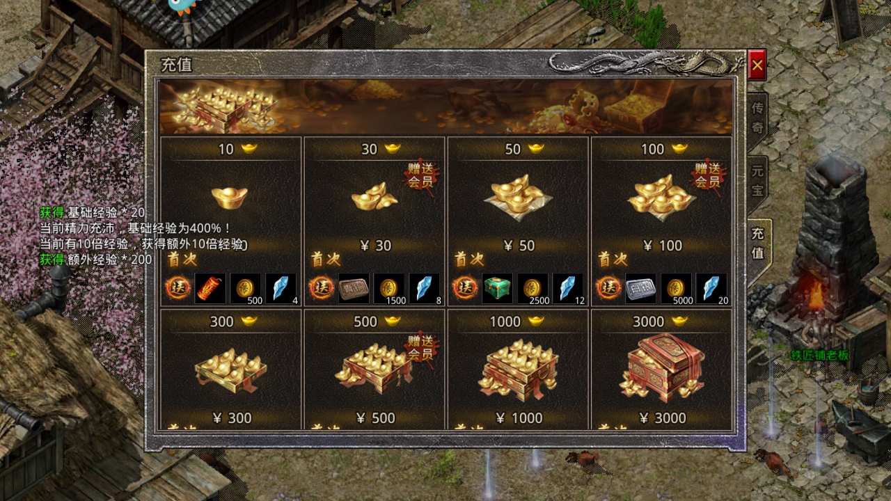 然后再去活动-开服礼包里把有10倍经验卷轴的礼包也给买了,这样也能靠着礼包的资源稳固角色的战斗力,也提升了本职业的排行榜排名。