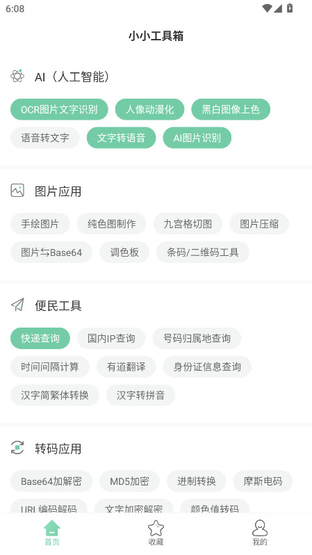 小小工具箱app是一款功能强大且实用的聚合型工具应用。它集成了多种日常必备功能,主要涵盖了AI技术、图片应用、便民工具、转码应用和设备应用等多个方面。该软件的核心优势在于其高度集成性,有效解决了用户需要下载和管理多个单一功能应用的问题,大大节省了手机存储空间,并提升了操作效率。无论是利用AI技术获取灵感,进行图片编辑,还是使用各类便民工具处理生活琐事,用户都可以在小小工具箱中轻松实现。