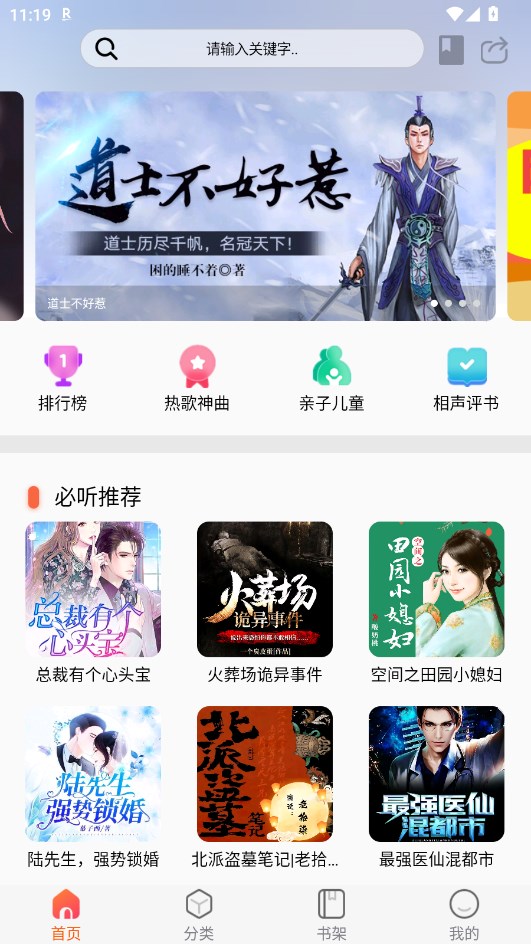 2.可以按 分类(小说、评书、相声、儿童、玄幻、都市等)浏览。