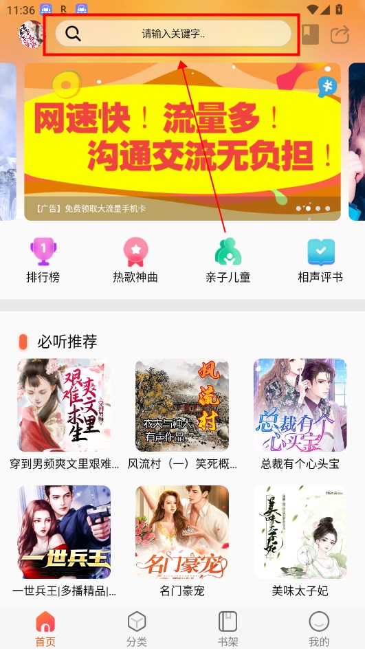 3.也可以点击 搜索栏 输入书名、作者或关键字快速查找。