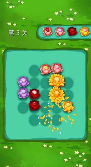3、如果你把与同一朵花相连的花放在一起,游戏中造成了一些困难,自动移除。