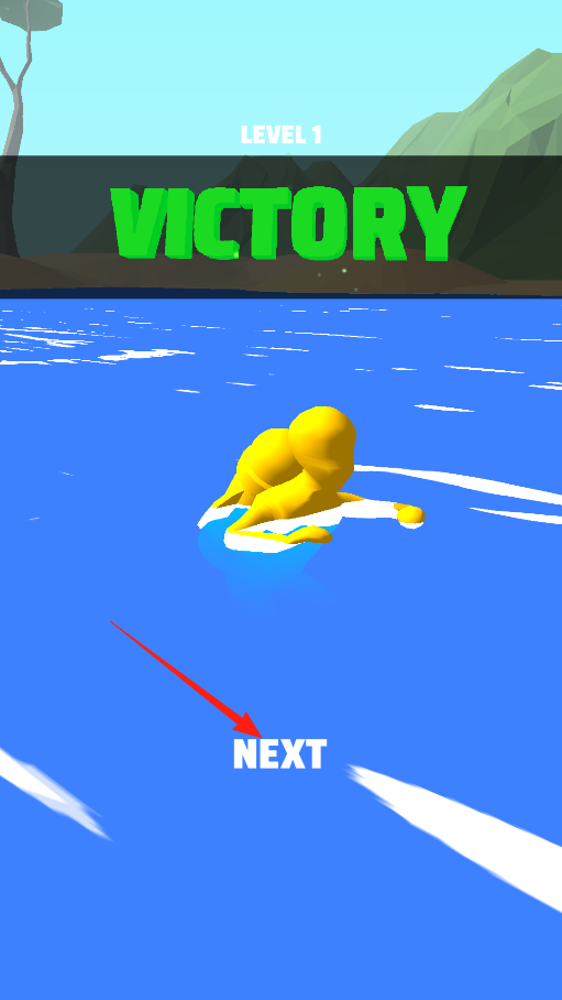 3、成功过河后,显示VICTORY胜利界面,想玩下一关,点NEXT按钮,继续挑战新关卡,看看后面的跑酷搭桥玩法有啥新变化,争取每关都顺利通关。
