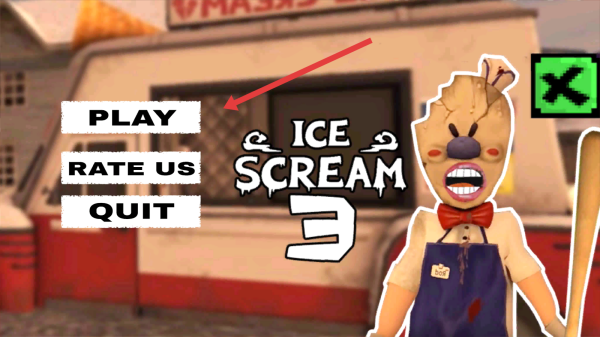 1、在游戏初始界面,点击PLAY按钮,进入恐怖冰淇淋3的冒险场景,开启刺激游戏进程。