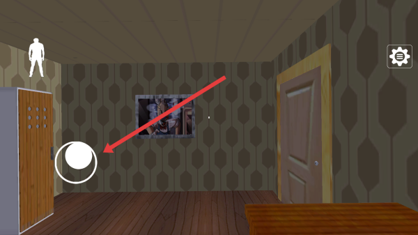 2、在房间内,通过滑动左侧白色圆形按钮,操控角色移动,探索房间环境,寻找线索道具。
