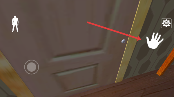 3、靠近房门时,点击右侧白色手掌图标,尝试开启房门,继续推进游戏,解锁新区域场景。