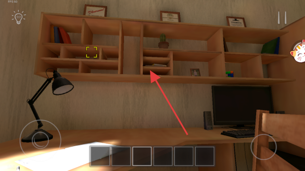 3、探索房间时,关注书架区域,箭头指向的格子可能藏有关键物品或线索,互动获取道具,推进逃脱剧情。