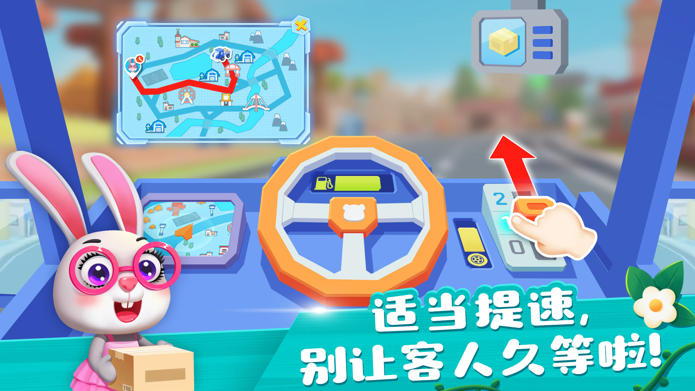 - 叮咚,客户下单啦。快驾驶货车,跟着地图导航,将物品及时送到小镇客户家里!呀!突然新增了好多订单,忙不过来怎么办?雇佣配送员,让他们来送货吧!(考验应变能力)