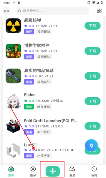 1.下载并进入软件后,登录账号,然后进入主页面,点击中间加号