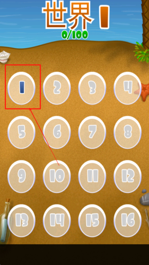 2、选择关卡:在关卡选择界面,点击数字“1”选择第一关。