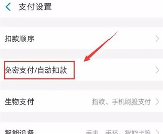 第三步,点击“免密支付/自动扣款”。如下图所示: