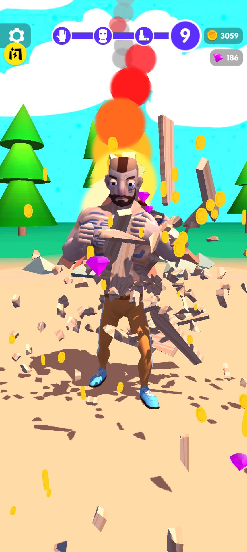 1、比试身手,砍各种柴火缓解压力,您还可以不断通过关卡解锁新道具。