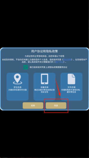 1、同意协议:阅读“用户协议和隐私政策”后,点击“同意”按钮完成授权。