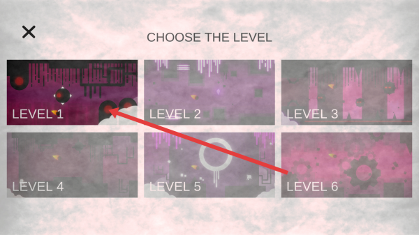 2、在选关界面,按照箭头指示通过点击LEVEL1,进入第一关,开启初始关卡的冒险挑战。