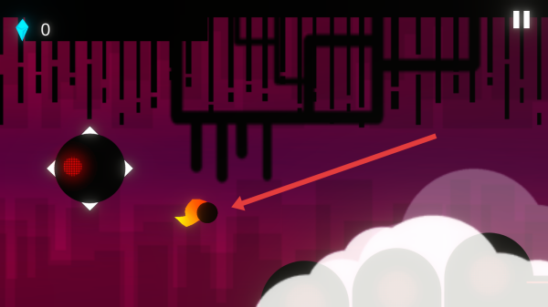 3、在游玩过程中,根据箭头提示需要不断点击屏幕操控火球,让小球跳跃,躲避障碍,推进冒险进程。