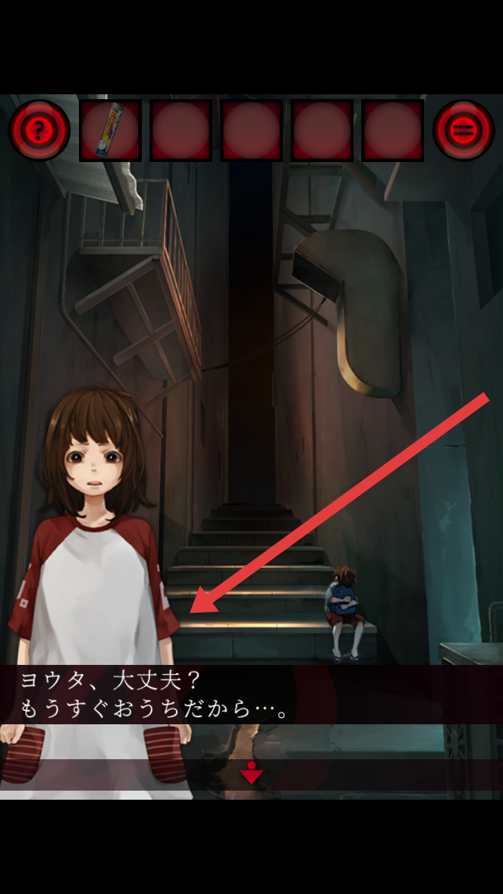 1、进入游戏后,需要继续点击画面底部红色箭头按钮,来进行推进剧情的对话,了解角色互动信息。