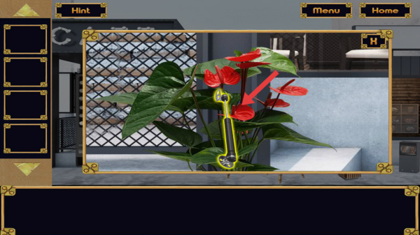 2、在红掌植物旁发现了高亮显示的液压杆道具,需要点击拾取该道具,将其收入左侧的道具栏。