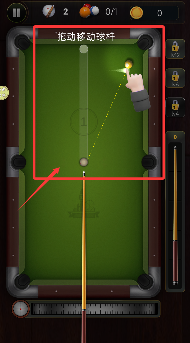 1、开局后按住球杆滑动,调整击打方向和力量,对准要击中的彩球。