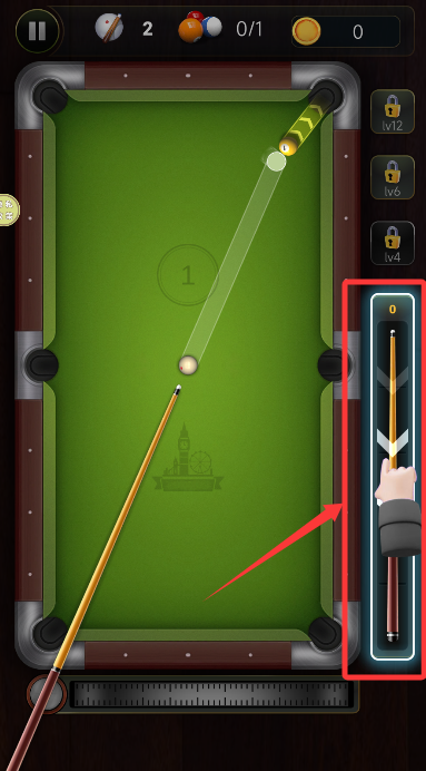 2、确认角度合适后,点击右侧击球区释放球杆,推动母球撞击目标。