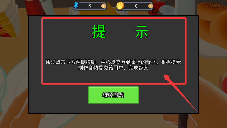 2、阅读引导说明,掌握点击左右按键控制厨房原料的操作方式。