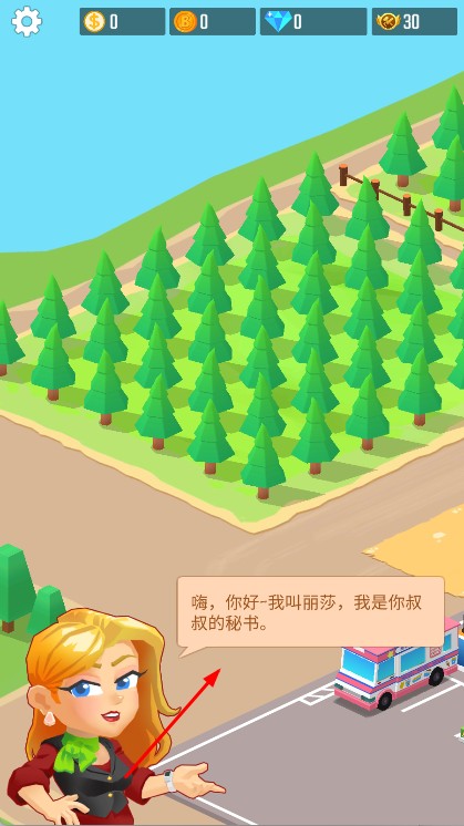 1、进入游戏,与秘书丽莎交互后,进入工人界面,雇佣伐木工训练工人,安排其在森林伐木。