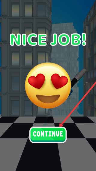 3、战斗成功后,界面显示NICE-JOB!,点击绿色CONTINUE按钮,领取通关奖励,随即开启下一轮冒险,推进游戏进度。