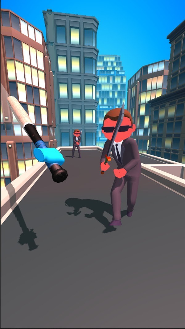1、在城市街道场景中,靠近敌人时角色会自动挥棒攻击,借攻击节奏快速击倒对手,逐步清空前方敌人,拓展前进路径。