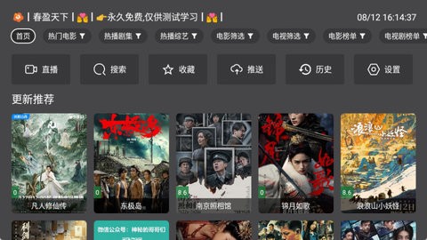 春盈天下永久版全程免费使用,用户可以把这个软件装在智能电视或者手机上,内置线路无需额外配置就可以看点播、直播、最新的电影、电视剧、综艺和动漫等。